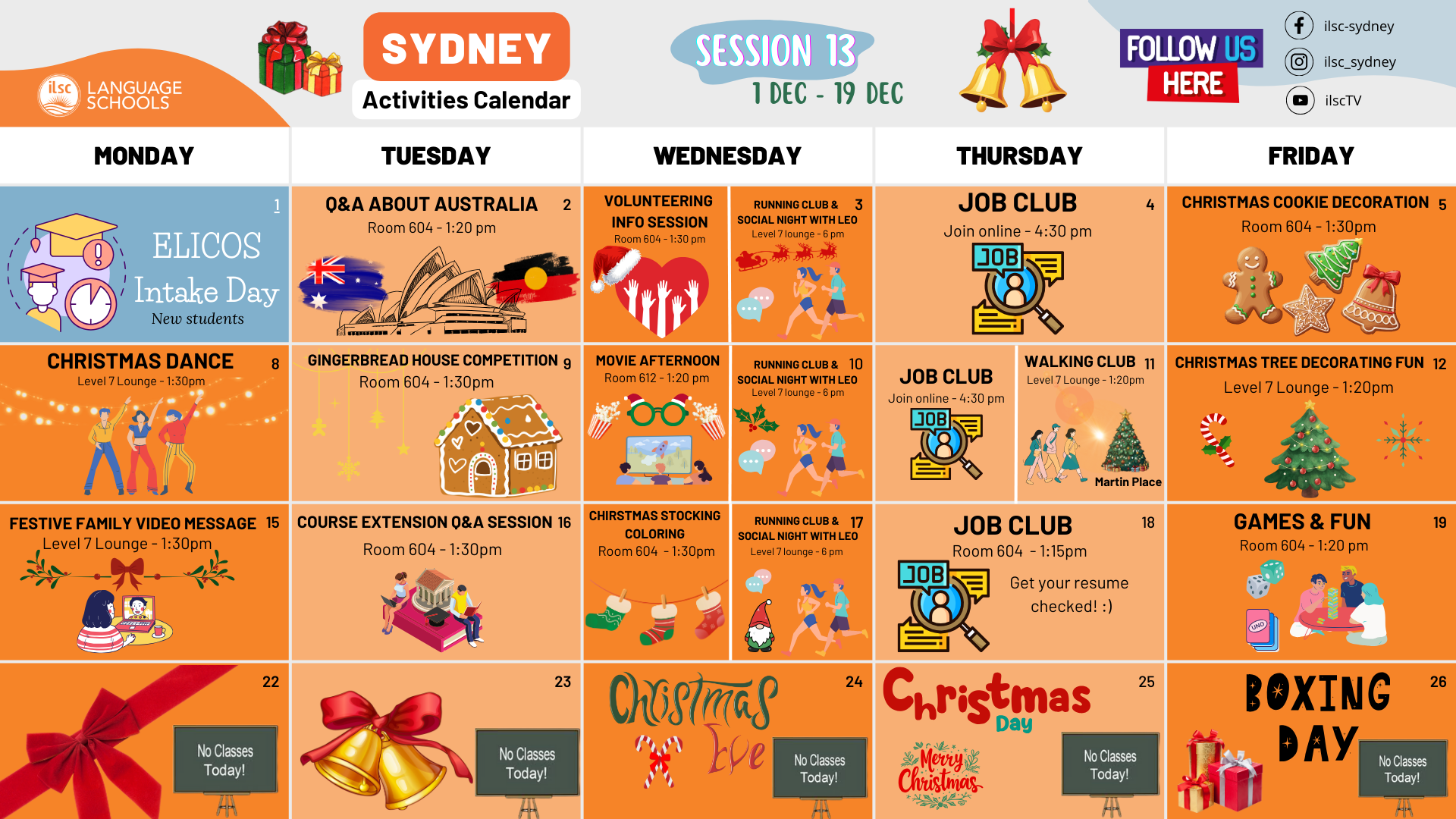 ILSC Australia Current Activities Calendars View our current, and past, activities calendars on every campus in Australia. Current: Session 13 - 2025 Adelaide Activities Calendar Brisbane Activities Calendar Melbourne Activities Calendar Perth Activities Calendar Sydney Activities Calendar Session 12 - 2025 Adelaide Activities Calendar Brisbane Activities Calendar Melbourne Activities Calendar Perth Activities Calendar Sydney Activities Calendar Session 11 - 2025 Adelaide Activities Calendar Brisbane Activities Calendar Melbourne Activities Calendar Perth Activities Calendar Sydney Activities Calendar Session 10 - 2025 Adelaide Activities Calendar Brisbane Activities Calendar Melbourne Activities Calendar Perth Activities Calendar Sydney Activities Calendar Session 9 - 2025 Adelaide Activities Calendar Brisbane Activities Calendar Melbourne Activities Calendar Perth Activities Calendar Sydney Activities Calendar Session 8 - 2025 Adelaide Activities Calendar Brisbane Activities Calendar Melbourne Activities Calendar Perth Activities Calendar Sydney Activities Calendar Session 7 - 2025 Adelaide Activities Calendar Brisbane Activities Calendar Melbourne Activities Calendar Perth Activities Calendar Sydney Activities Calendar Session 6 - 2025 Current Adelaide Activities Calendar Current Brisbane Activities Calendar Current Melbourne Activities Calendar Current Perth Activities Calendar Current Sydney Activities Calendar Session 5 - 2025 Activities Calendar Adelaide Activities Calendar Brisbane Activities Calendar Melbourne Activities Calendar Perth Activities Calendar Sydney Session 4 - 2025 Activities Calendar Adelaide Activities Calendar Brisbane Activities Calendar Melbourne Activities Calendar Perth Activities Calendar Sydney Session 3 - 2025 Activities Calendar Adelaide Activities Calendar Brisbane Activities Calendar Melbourne Activities Calendar Perth Activities Calendar Sydney Session 2 - 2025 Activities Calendar Adelaide Activities Calendar Brisbane Activities Calendar Melbourne Activities Calendar Perth Activities Calendar Sydney Session 1 - 2025 Activities Calendar Adelaide Activities Calendar Brisbane Activities Calendar Melbourne Activities Calendar Perth Activities Calendar Sydney